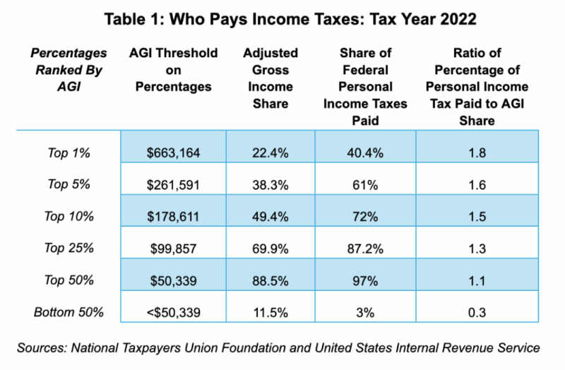 [3] Brady, Demian. “Who Pays Income Taxes: Tax Year 2022” National Taxpayers Union Foundation. February 13, 2024. Dec 2, 2024. https://www.ntu.org/library/doclib/2024/12/Who-pays-tax-year-2022.pdf
