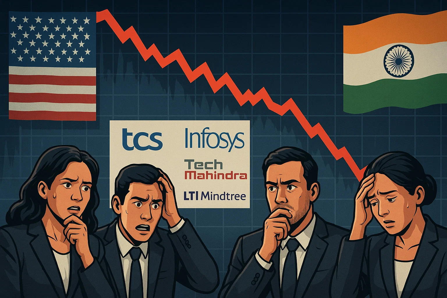 Infosys shares tumbled 3.9%, while Tech Mahindra suffered the biggest blow with a 6.5% drop.