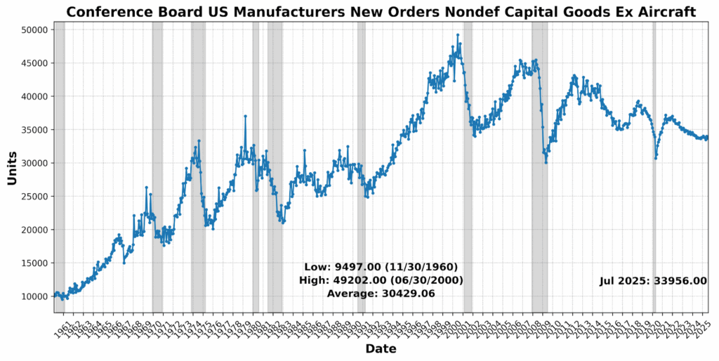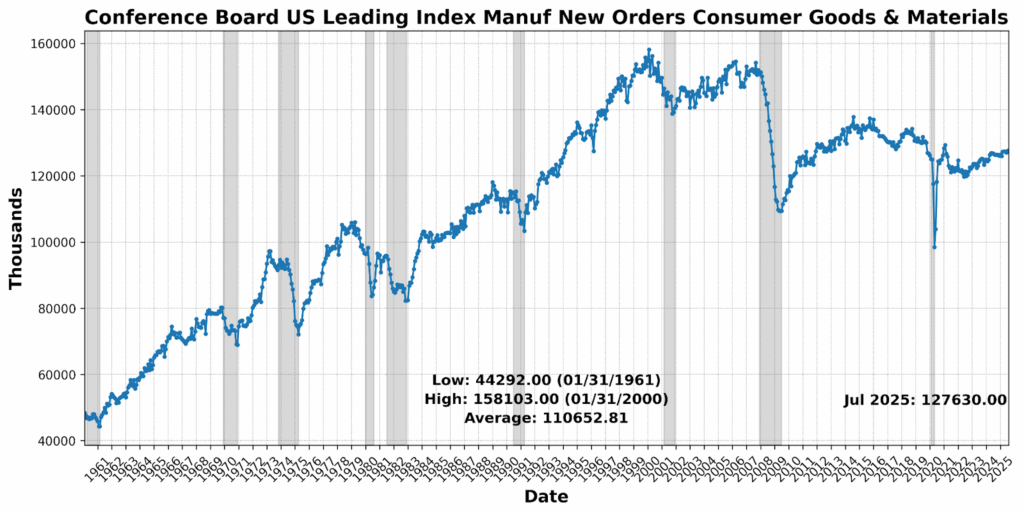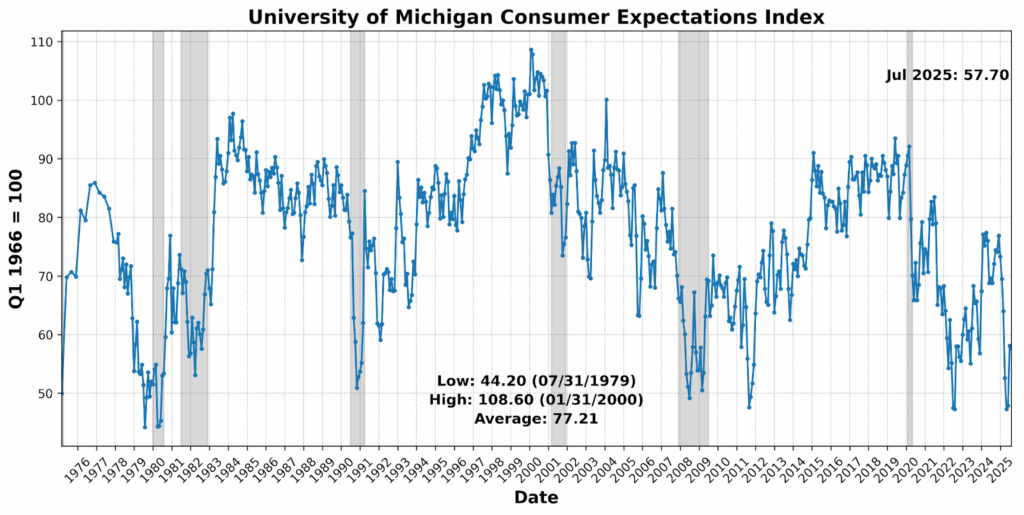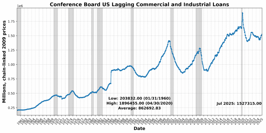 The most notable change came in the Lagging Indicator, which leapt to 50 from 25, with inflation pressures and growth in loans driving the surge. While backward-looking data typically trail turns in the cycle, the sudden jump signals a reemergence of price and credit intensity even as leading measures ease. Taken together, July’s Business Conditions profile points to softer forward momentum, stalled current activity, and backward indicators solidifying — a configuration that keeps the near-term outlook unsettled and highlights the difficulty of extrapolating clear directional signals in a period of policy volatility.