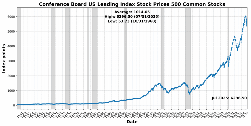 AIER’s Business Conditions Monthly indicators for July 2025 point to a reversal of last month’s momentum and a rebalancing across the indicator set. The Leading Indicator slipped 4 points to 67 from 71, ending the late spring surge and underscoring lingering fragility in certain forward-looking measures. Markets and housing remained supportive, but weaker sentiment and transport demand tempered breadth, suggesting that expectations for a strong second-half pickup should be moderated.