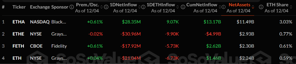 Nevertheless, BlackRock’s ETHA stood out with inflows worth $28.35 million, as other Ether funds bled.