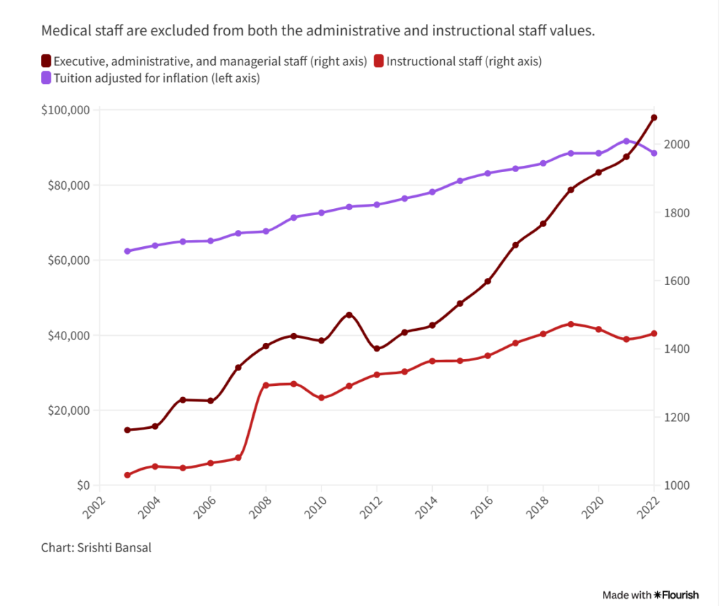Figure 1: Trend lines track the rise of non-teaching administrative staff.