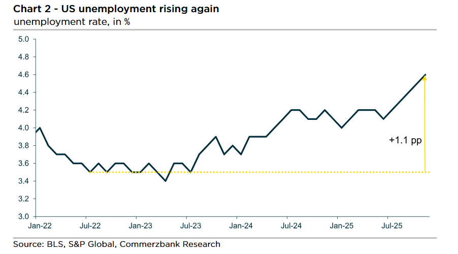 “We expect it to remain at 4.6% in December. The Fed would then probably continue to be more concerned about the labour market than about inflation risks,” the German bank said.