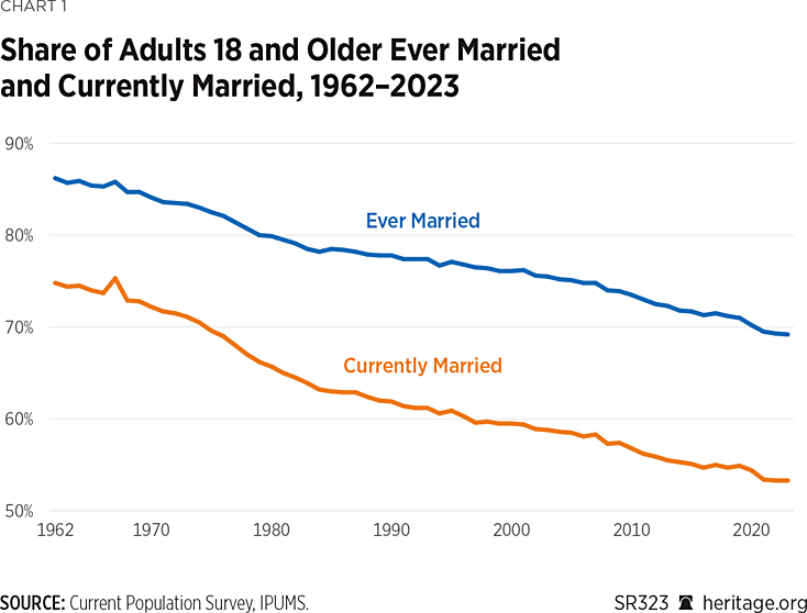 Several laudable elements in the Heritage report shouldn’t be overlooked. First, it acknowledges that many policies favor traditional families. While there are indeed over 1,000 forms of federal privilege granted to married couples, these have been in place throughout the period when both marriage and fertility rates are falling. This raises the question: Why are these so-called “pro-family” or “pro-natal” policies failing to achieve their stated goals? Perhaps it’s because other measures on the books outweigh them, and actually short-circuit family formation.