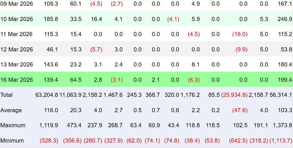While the current inflow streak is the longest since October, it remains smaller in scale compared to the previous cycle between September and October 2025.